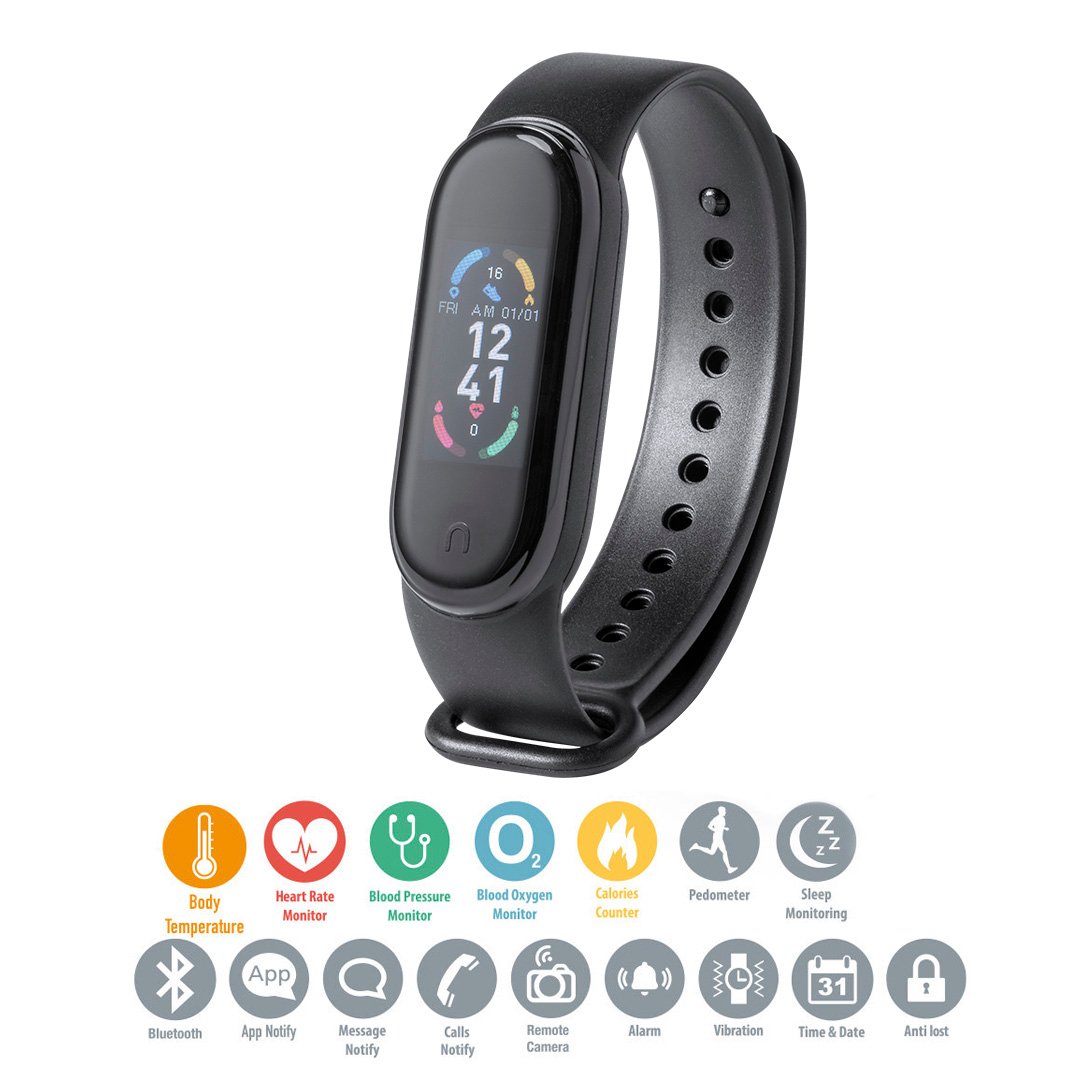 Brazalete inteligente multifunción de diseño deportivo, con batería de litio y conexión Bluetooth® 4.0, recargable mediante conexión USB -cable incluido-. Su cuerpo en material TPU y su pantalla a color TFT integrada de 0,96 pulgadas lo convierten en el gadget perfecto para todo tipo de actividades deportivas, de ocio y para el día a día. APP disponible para iOS y Android. Con monitorización de frecuencia cardíaca, presión arterial y multitud de funciones. Presentado en atractiva caja de diseño.
