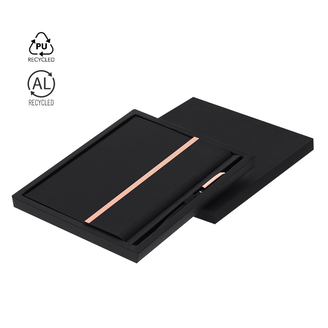 Bloc PU Reciclada. Portada Rígida. 80 Hojas. Bolígrafo Aluminio Reciclado Incluido